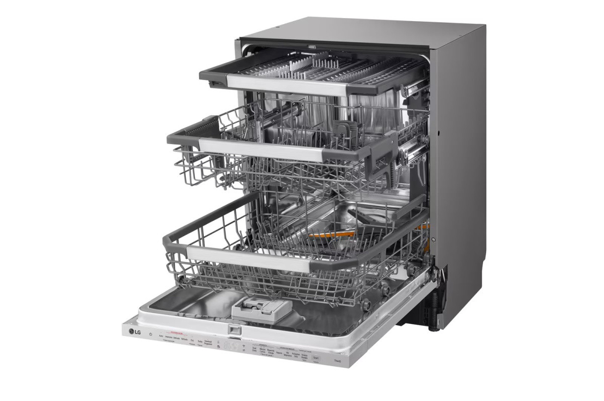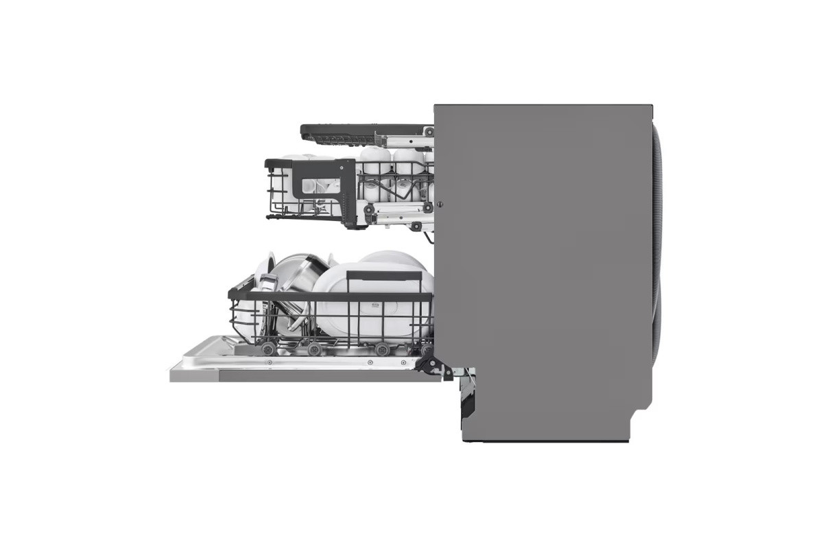 QuadWash™ využívá čtyři vícesměrná ramena k důkladnému sprchování každé položky, zatímco Dual Zone Wash umožňuje zvolit různé úrovně tlaku pro horní a spodní patro.