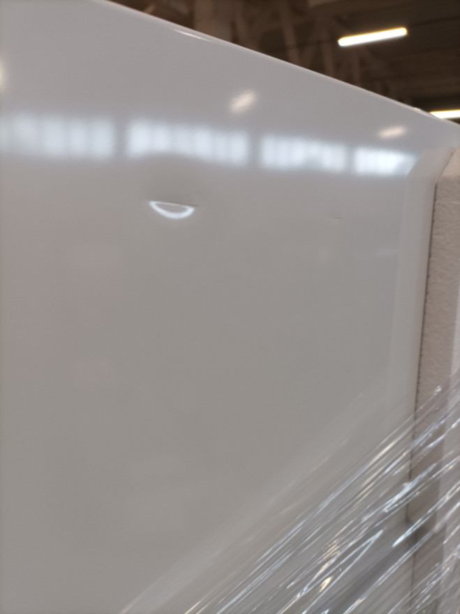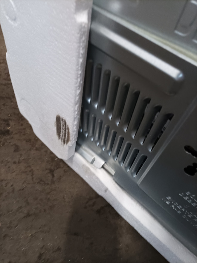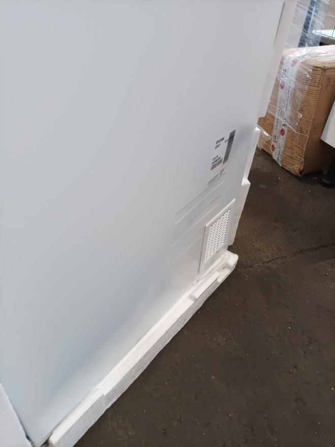 Chladnička má povrchová poškození z přepravy - viz foto - vryp a dolíky v horních dveřích, promáčklý bok, ohnutý plech na spodní hraně. Tato poškození nemají vliv na její funkčnost, na chladničku je poskytována standardní záruka 24 měsíců. Chladnička má náhradní přepravní obal. (sn.LB924)