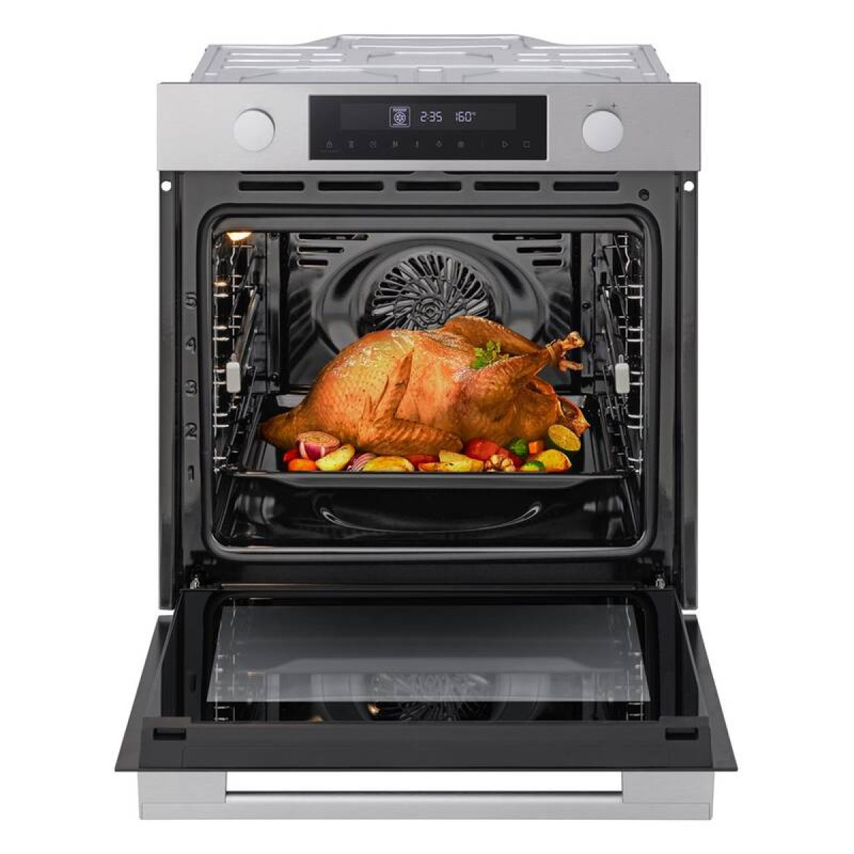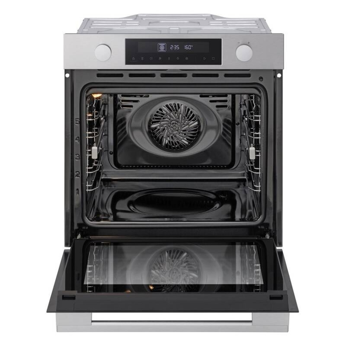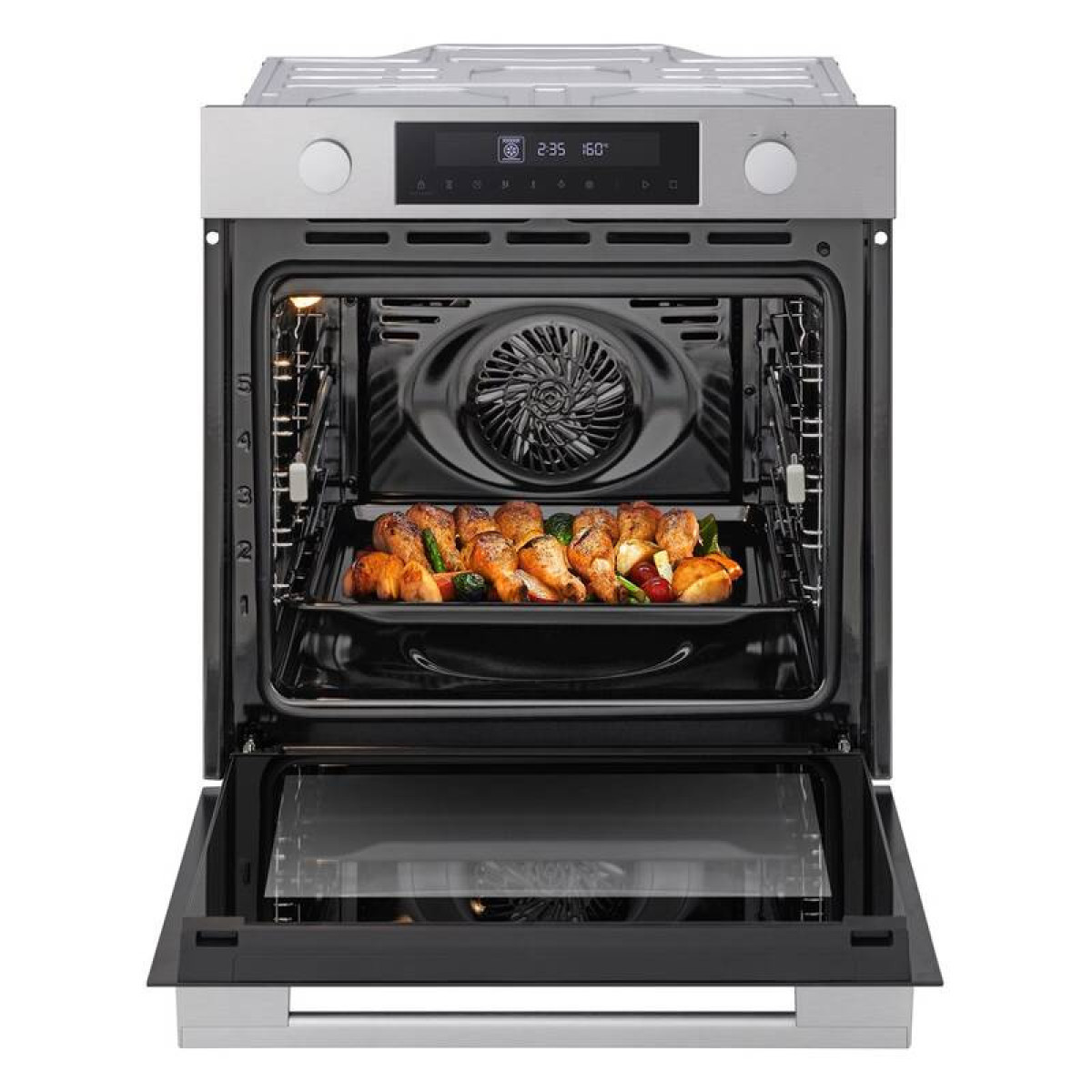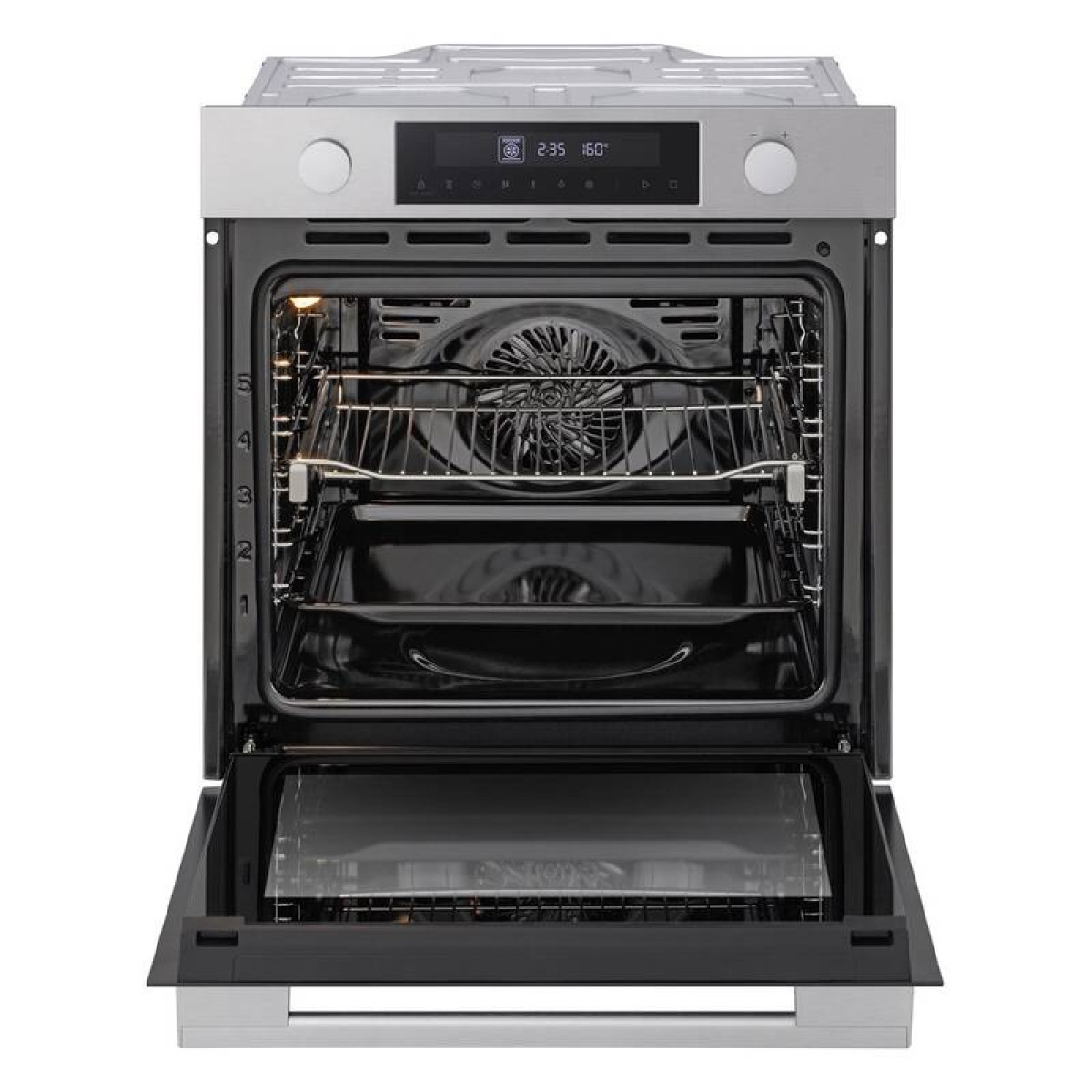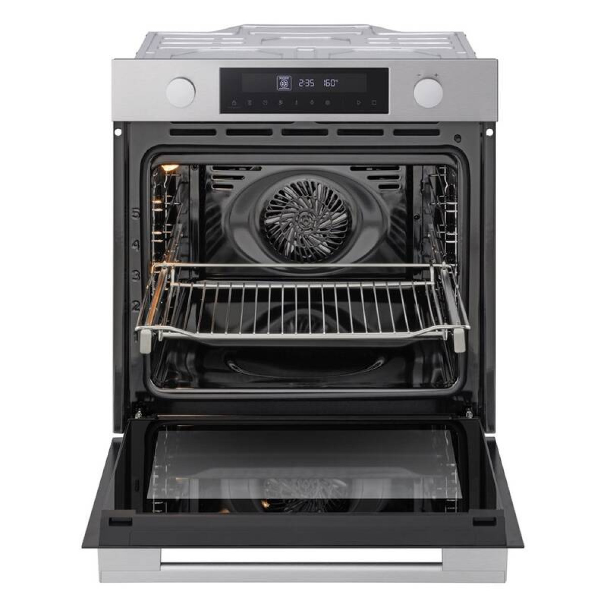 Tangenciální ventilační systém trouby rovnoměrně rozvádí vzduch uvnitř a dosahuje do každého rohu, čímž se dosahuje lepšího propečení jídla.