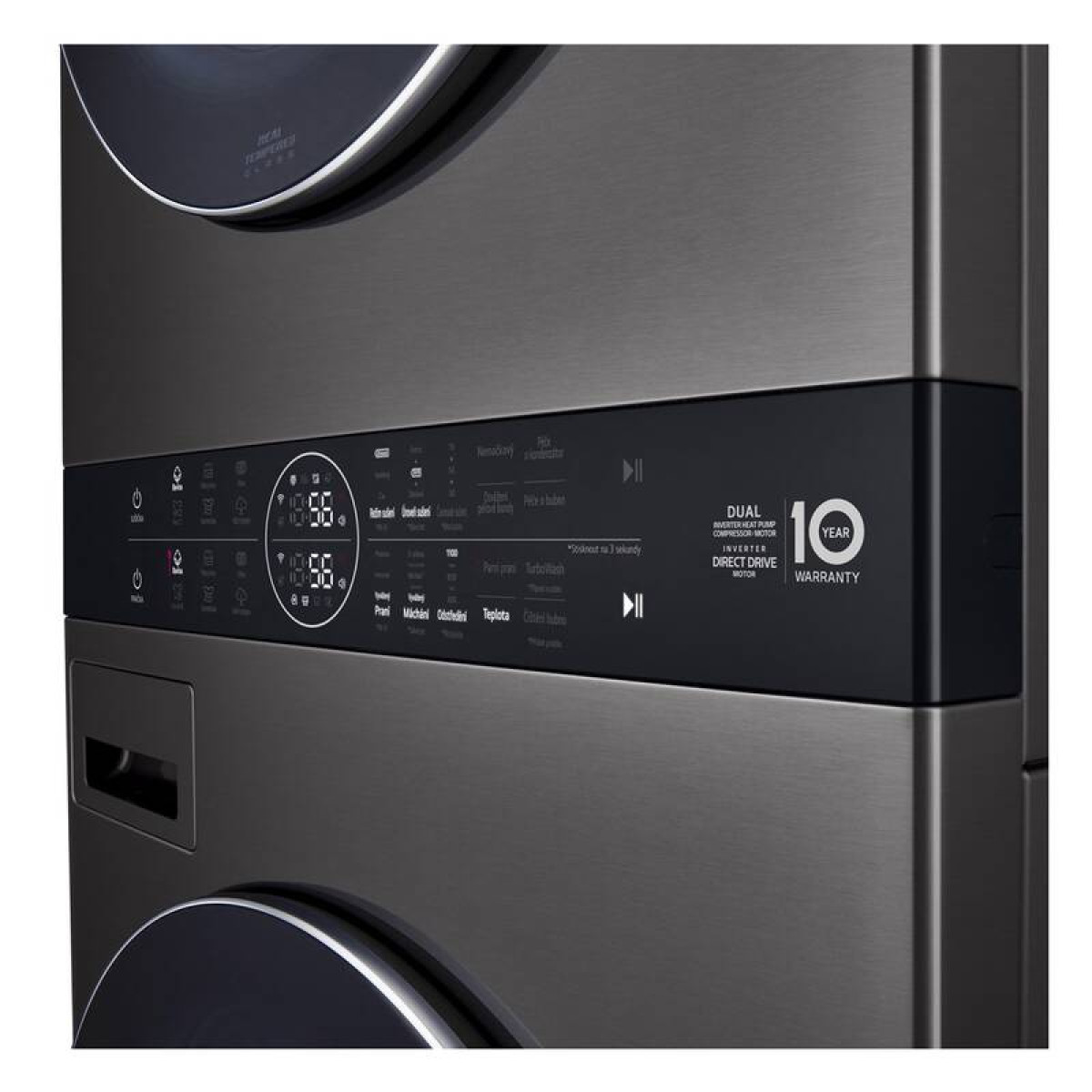 Invertorový motor s přímým pohonem, který pohání naše pračky, je super spolehlivý a opravdu tichý a zároveň poskytuje dlouhotrvající výkon s 10letou zárukou na motor. Mějte klid s energeticky úsporným tepelným čerpadlem DUAL Inverter Heat Pump™, na které se vztahuje 10letá záruka.